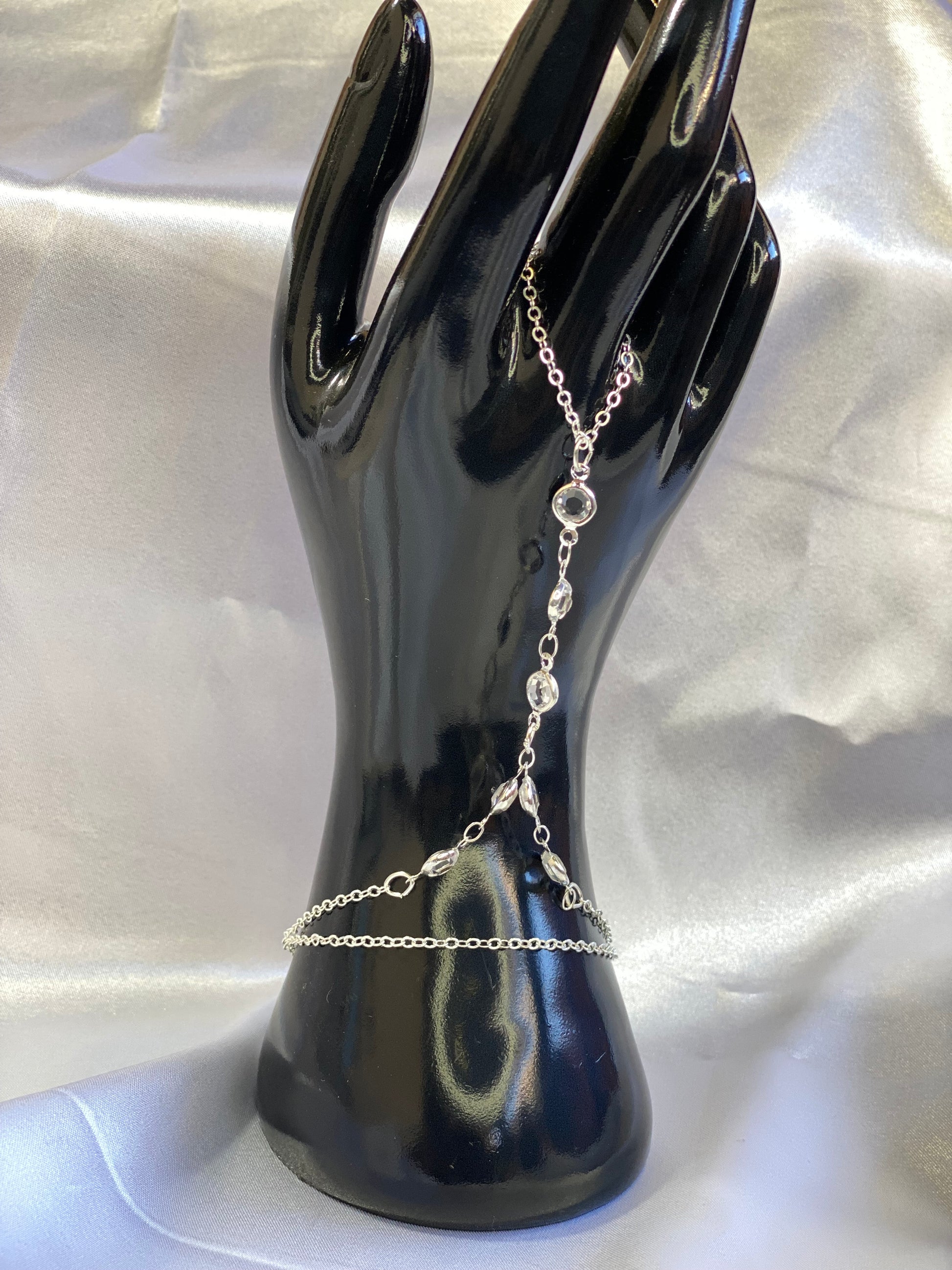 O Anel Bracelete de cristais é sofisticado e elegante, com corrente fina e pontos de luz que destacam as mãos de forma delicada. Perfeito para eventos, fotos, produções glam e até para looks minimalistas onde tu quer só um toque de brilho sem pesar.