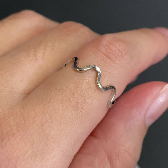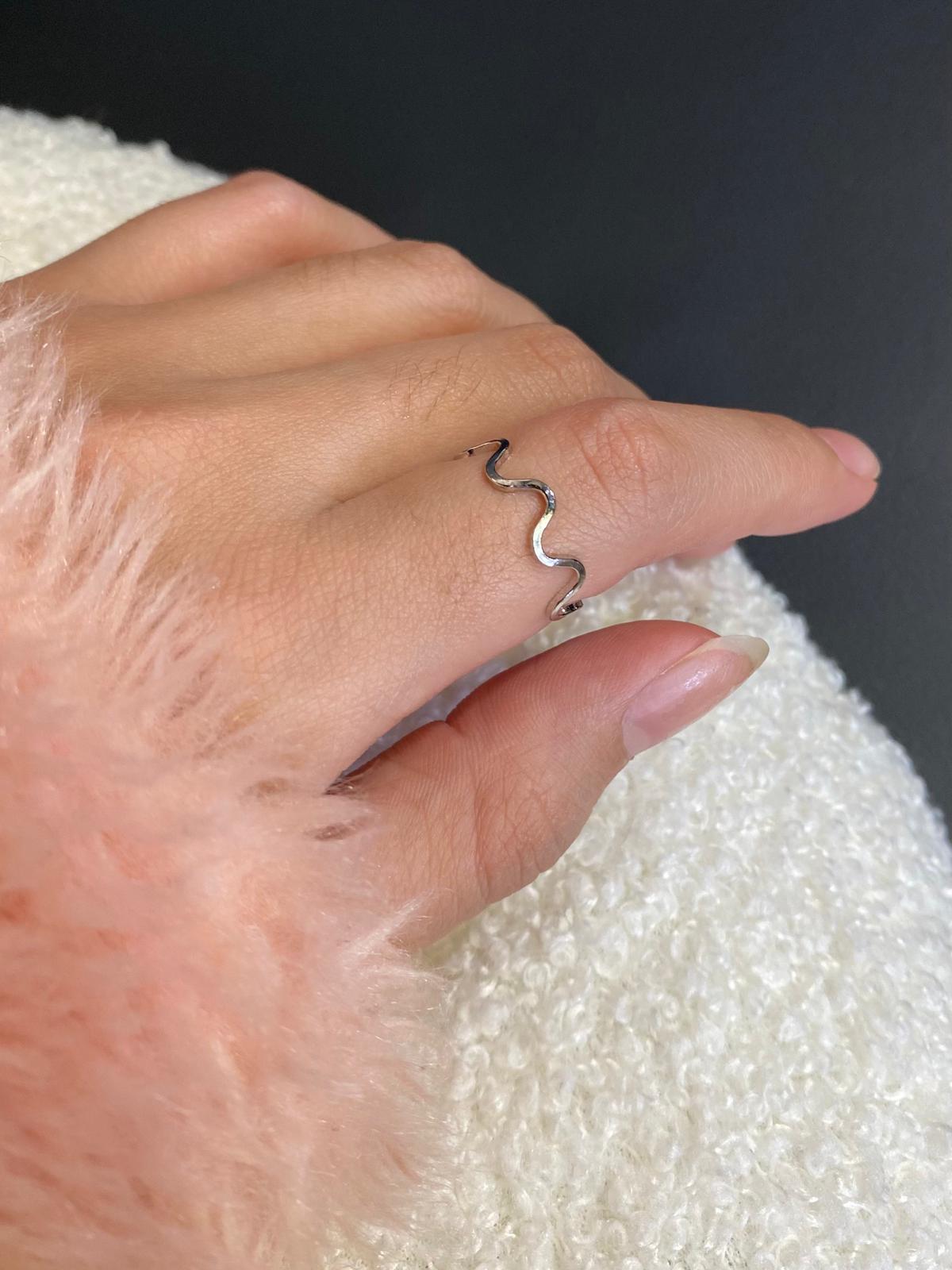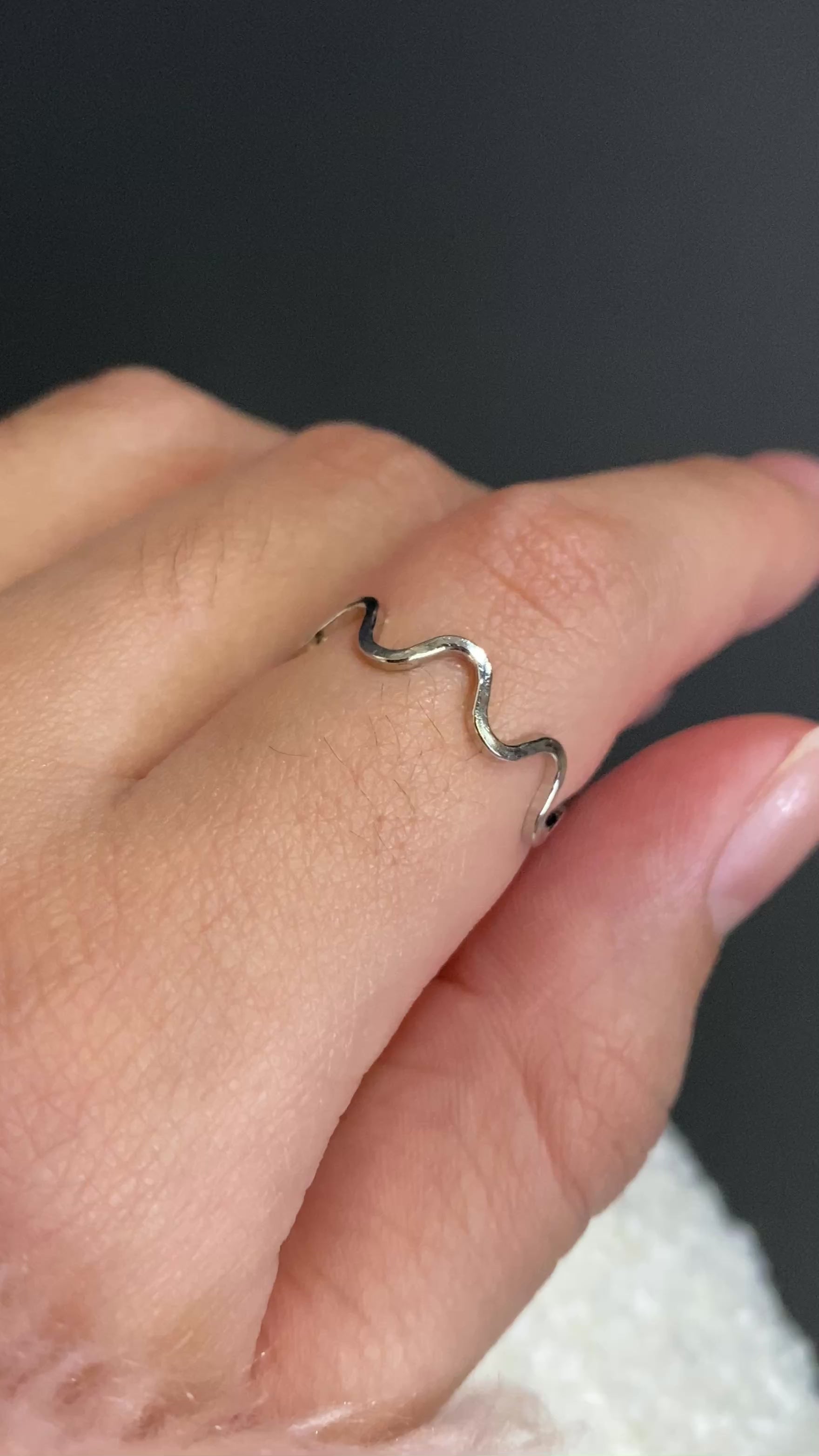 Anel prateado minimalista com design ondulado, perfeito para composições leves, modernas e que combinam com tudo. Pode ser usado sozinho ou em mix de anéis.