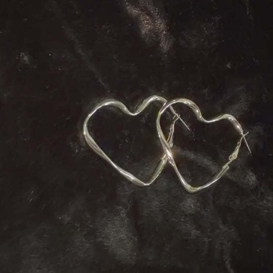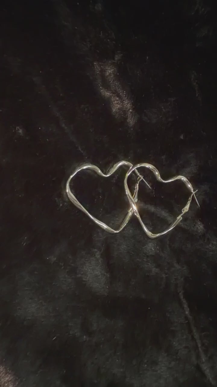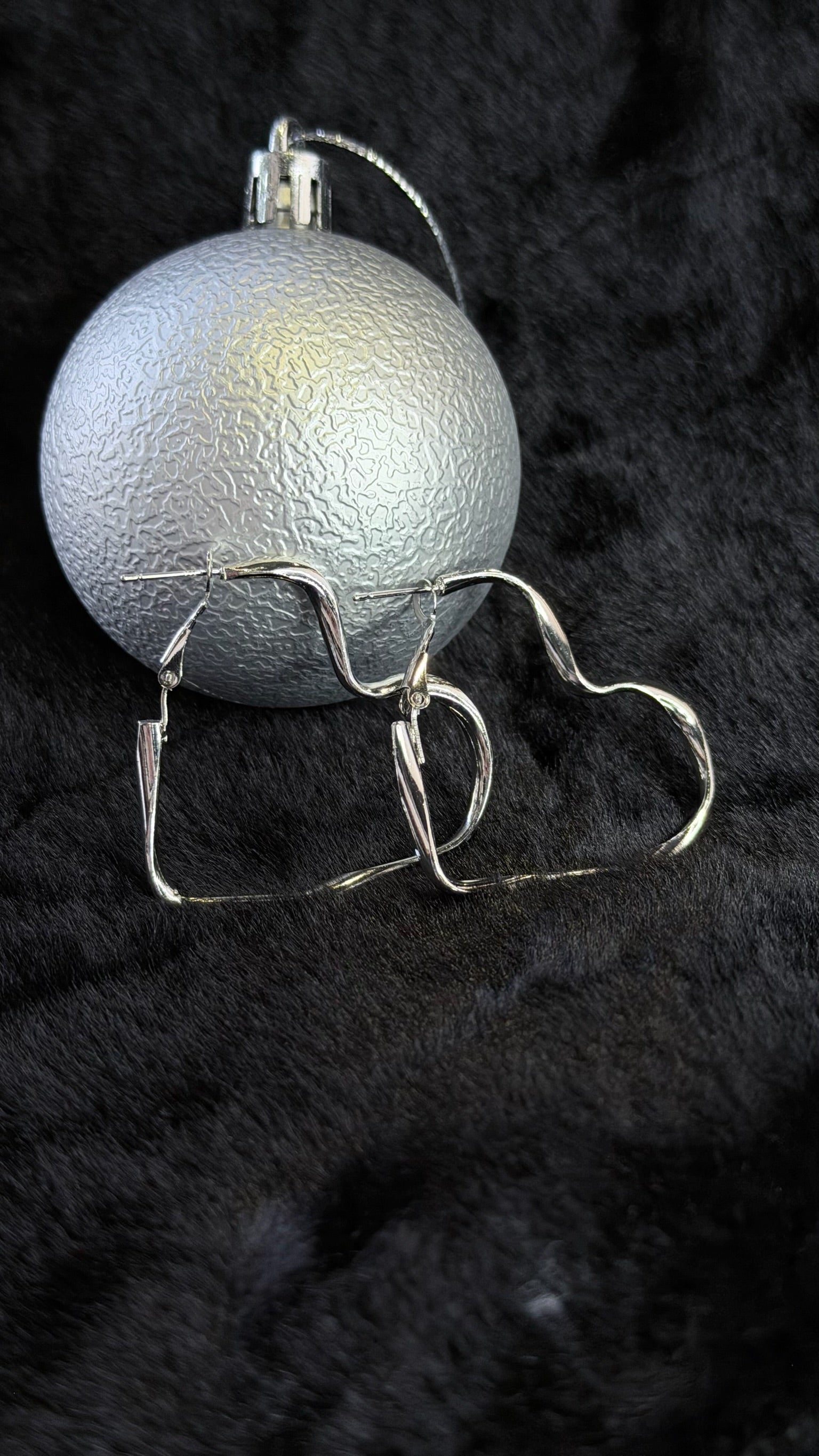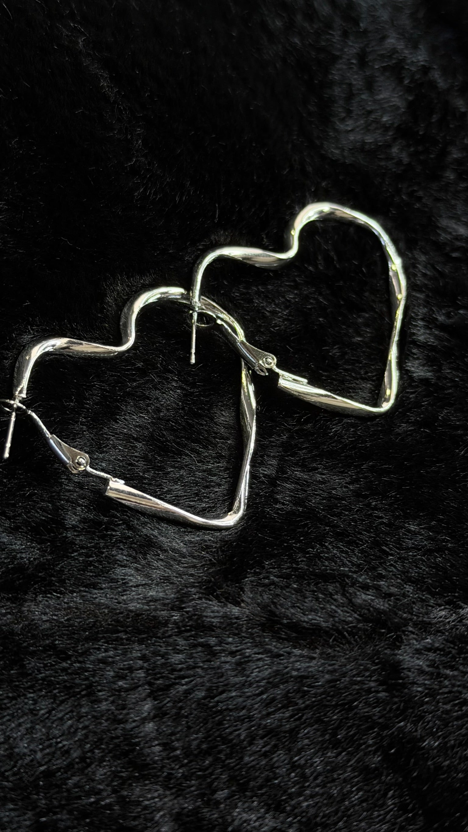 Brincos em formato de coração com efeito torcido e acabamento prateado brilhante. Leves, modernos e perfeitos para quem gosta de um toque marcante sem perder o romantismo. Ficam lindos com penteados presos ou looks mais minimalistas, trazendo destaque imediato ao rosto.