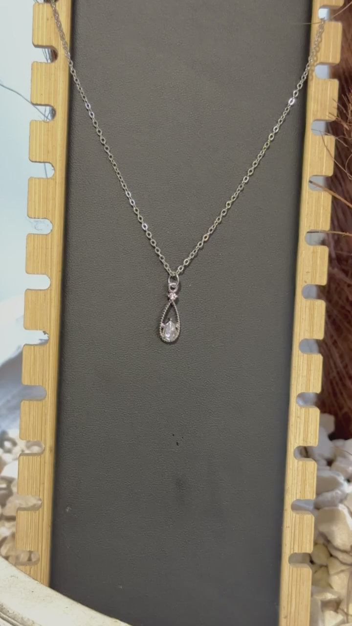 Colar com pingente de gota em cristal, super elegante e delicado. Fica perfeito em looks mais formais ou para quem ama brilho discreto no dia a dia.